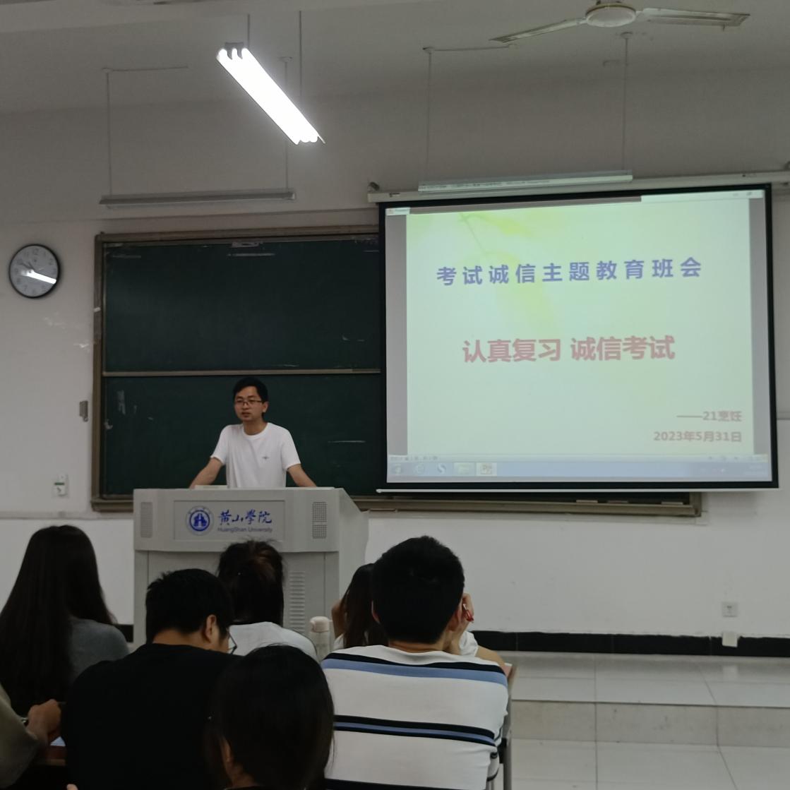 班会上,章勤老师首先提醒同学们及时关注期末考试安排,认真复习备考,自觉遵守考试纪律、诚信考试。深刻意识到“诚信考试光荣,违纪舞弊可耻。”提醒同学们知晓考试作弊的严重性,不仅仅是取消成绩,还会受到严格的校纪处分。最后章勤老师提醒我们大学即将过半,要认真规划自己的未来,以及无论在校园内外都要时刻注意消防安全和交通安全,做好自身防护。